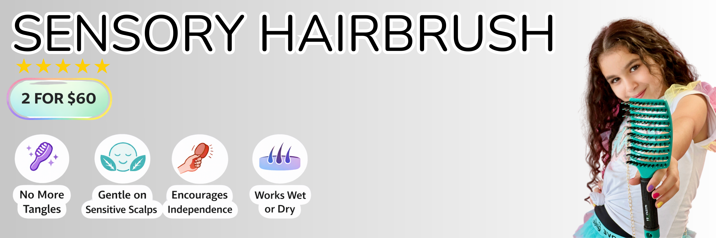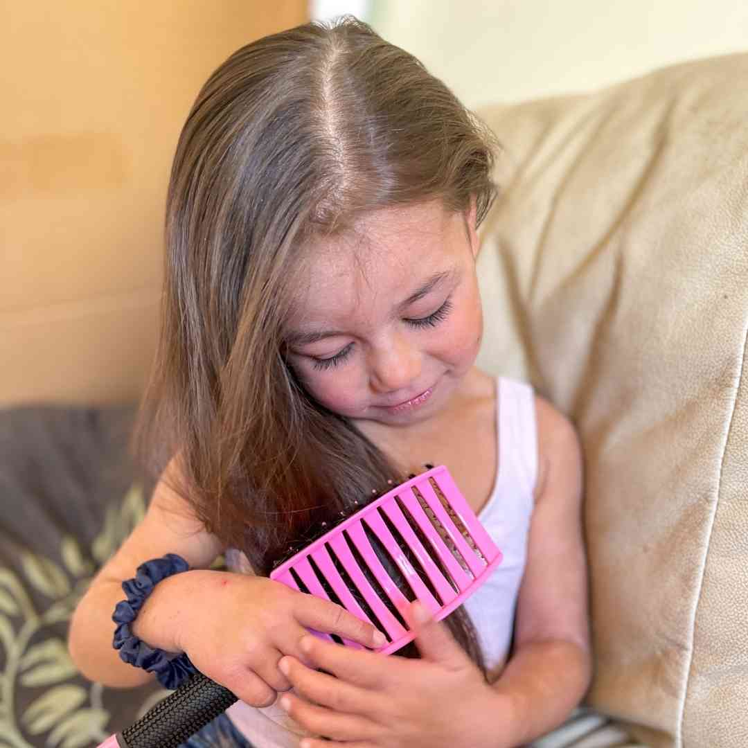 I created our Sensory Hairbrush after struggling with my own hair snapping, breaking, thinning and hurting every time I brushed. Nothing felt gentle enough that still actually detangled, so I started designing one myself. Around the same time, my best friend’s daughter, who’s on the spectrum wouldn’t let anyone brush her hair without tears or meltdowns.