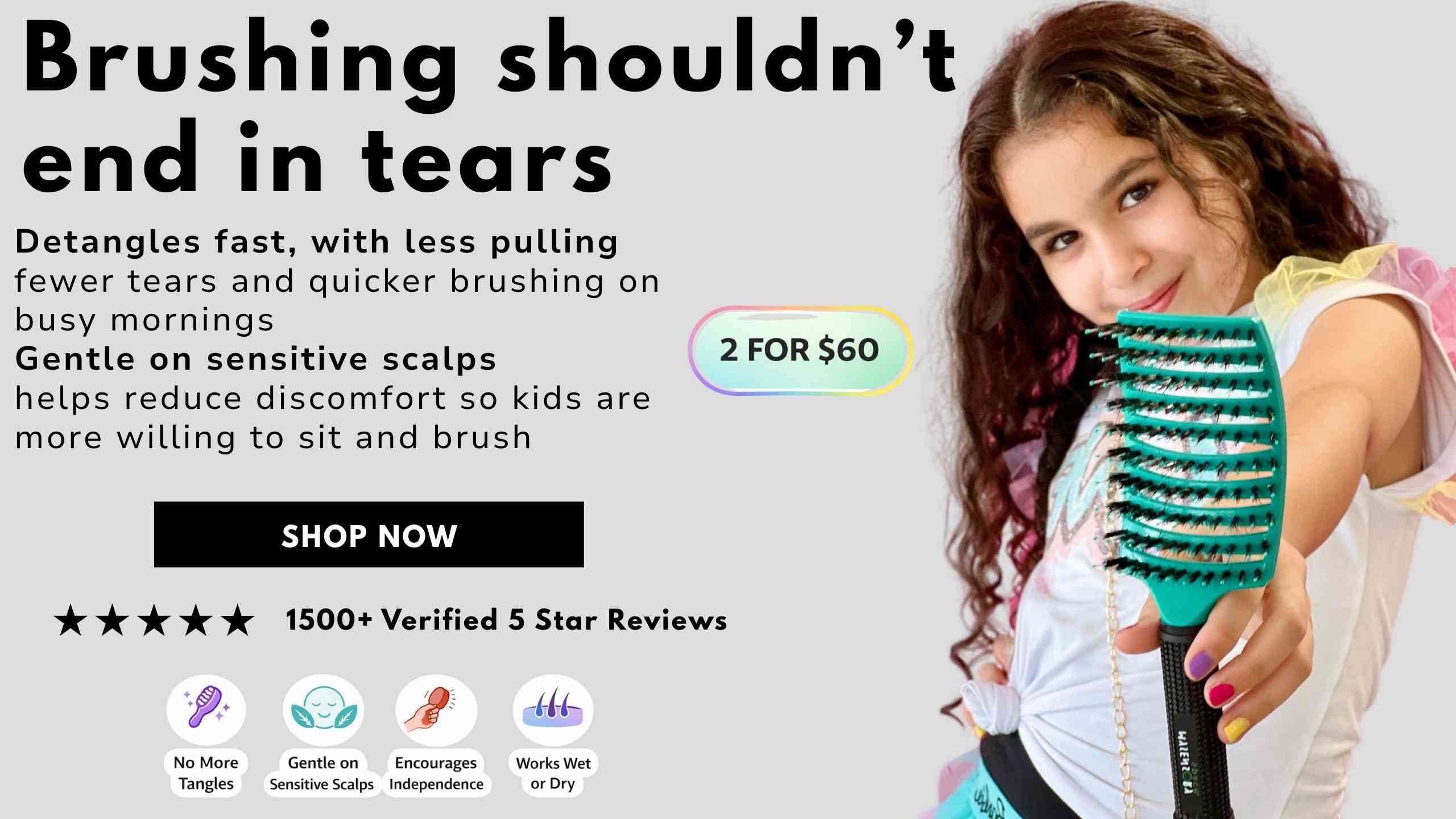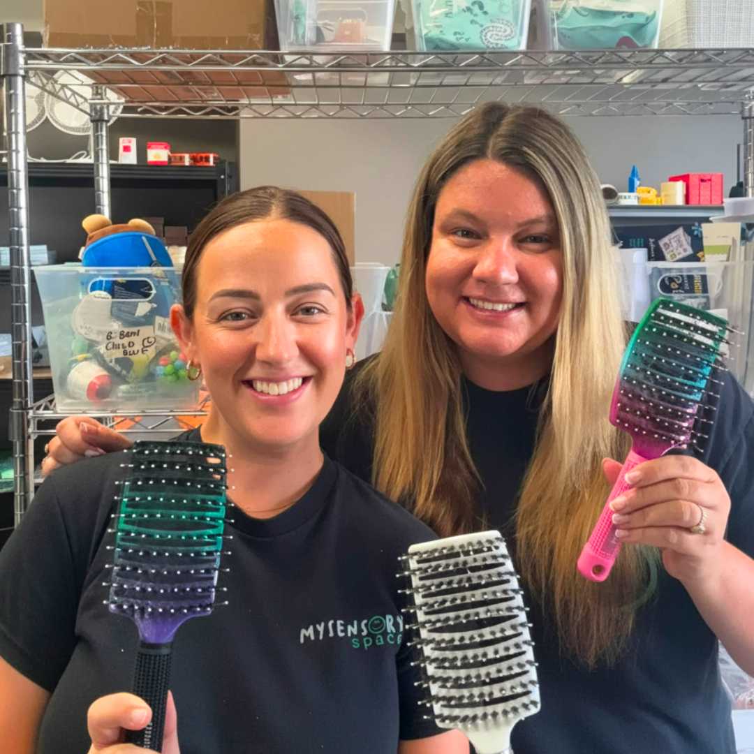 I created our Sensory Hairbrush after struggling with my own hair snapping, breaking, thinning and hurting every time I brushed. Nothing felt gentle enough that still actually detangled, so I started designing one myself. Around the same time, my best friend’s daughter, who’s on the spectrum wouldn’t let anyone brush her hair without tears or meltdowns.