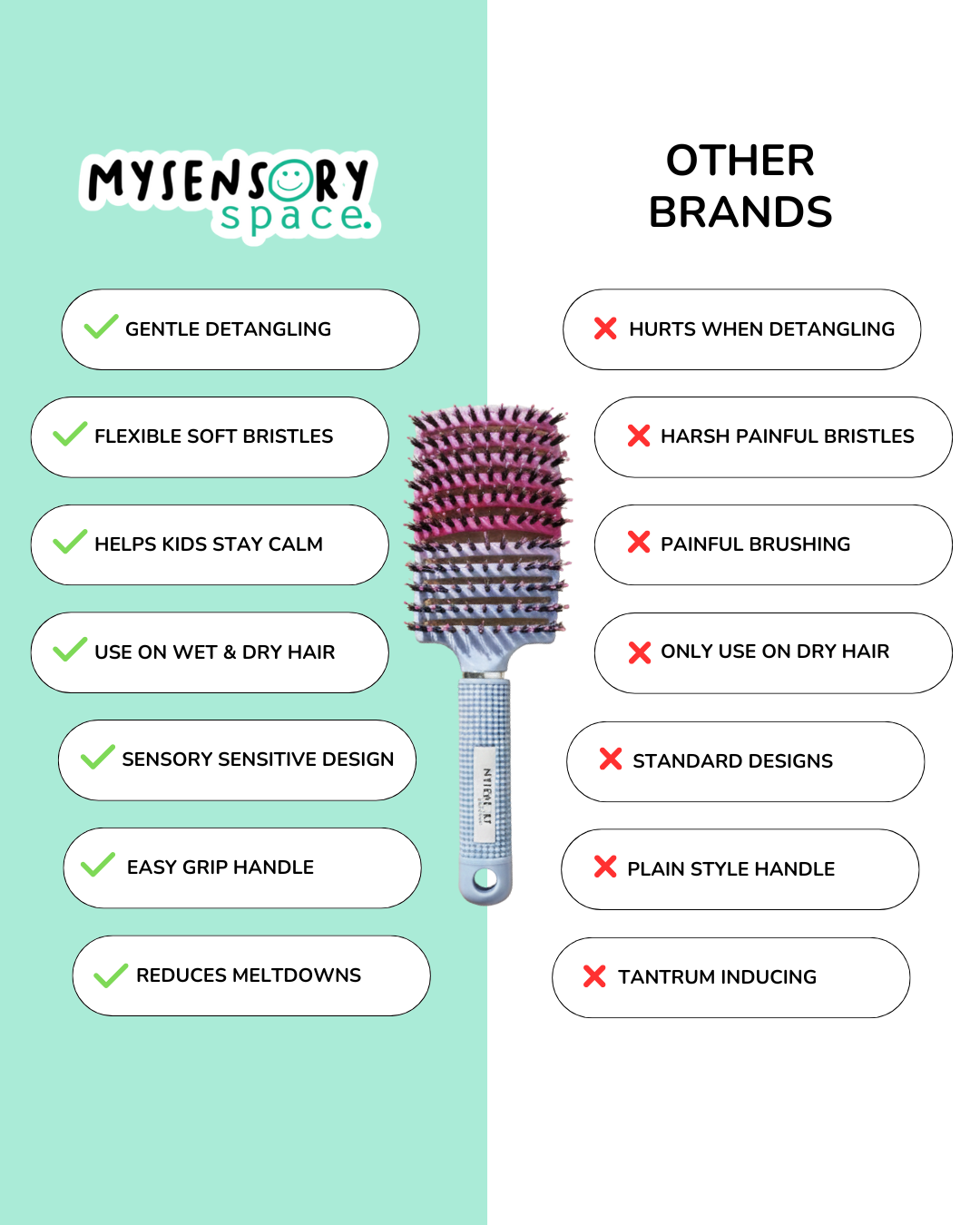 Our sensory hairbrush was designed to feel gentle, predictable and comfortable for kids who struggle with brushing.